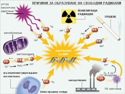 Тъй като тялото използва постоянно кислород , производните му продукти предизвикат окислително увреждане на клетките на  вашият организъм. Свободните радикали се получават от пушене, замърсяване, отрови, пържени храни, а също и като страничен продукт от нормалната обмяна на веществата. Свободните радикали се свързват с повишен риск от редица хронични заболявания. “Антиоксидантите” като витамин С, каротин и витамин Е намаляват вредите, причинени от свободните радикали.